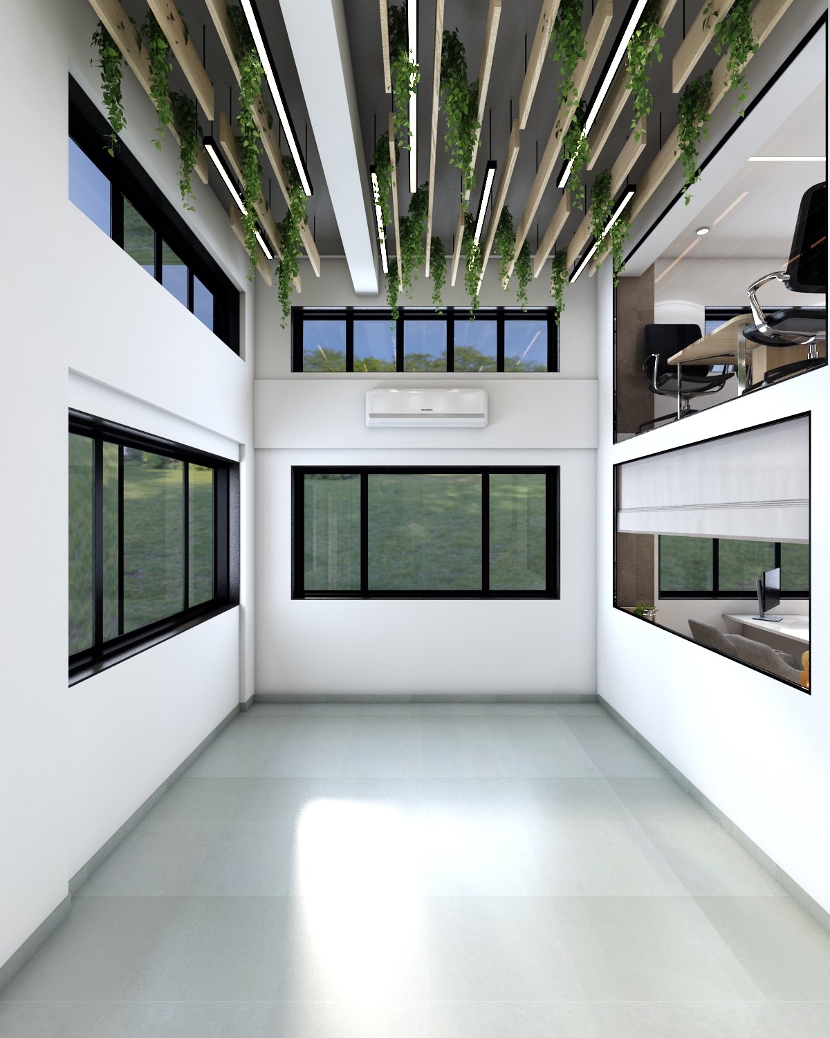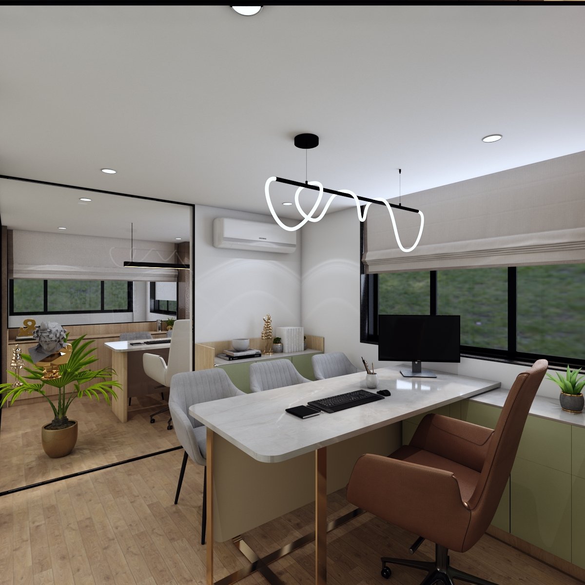 A modern commercial office interior designed to enhance productivity and collaboration. Clean lines, ergonomic furniture, and smart space planning create a professional yet inviting atmosphere.