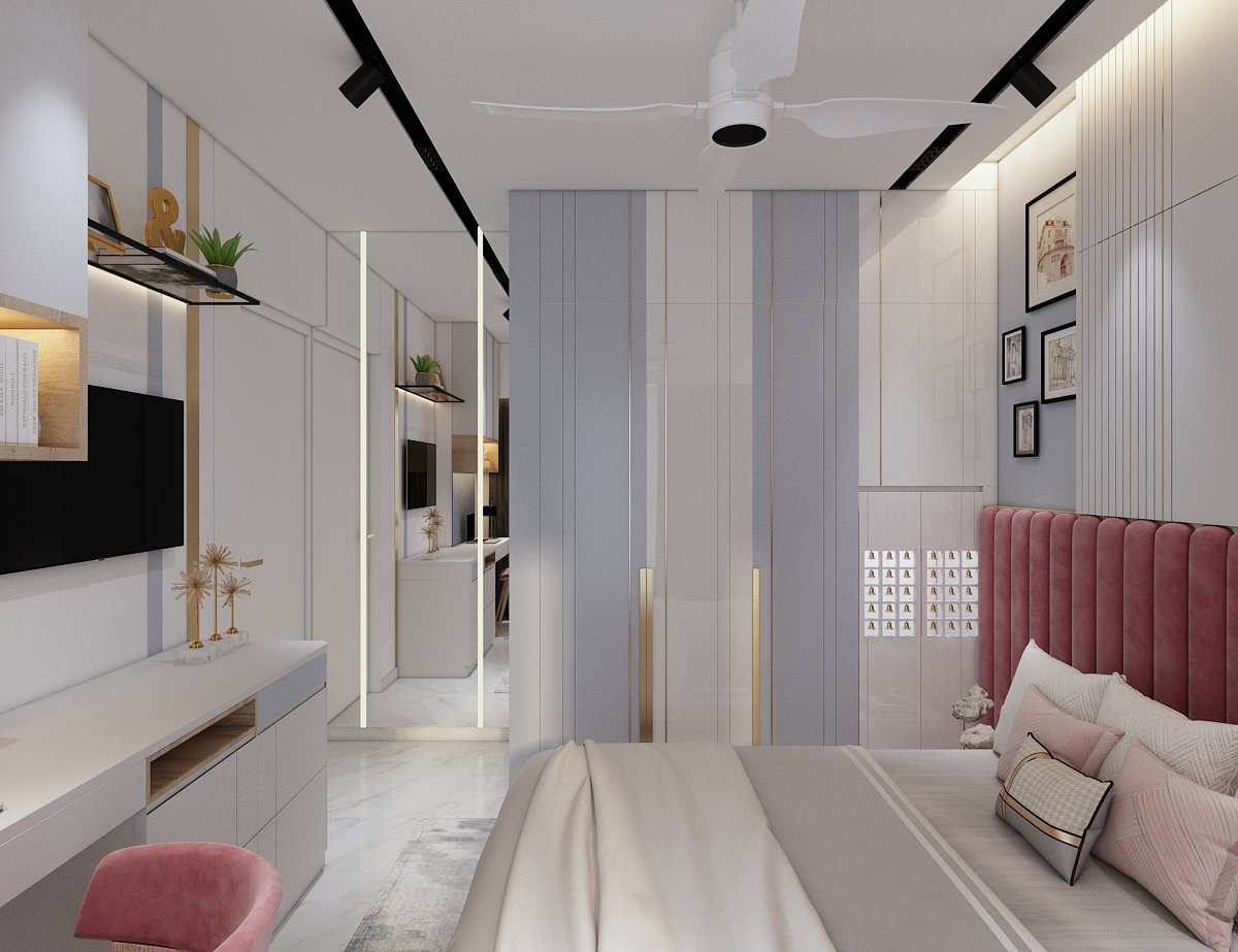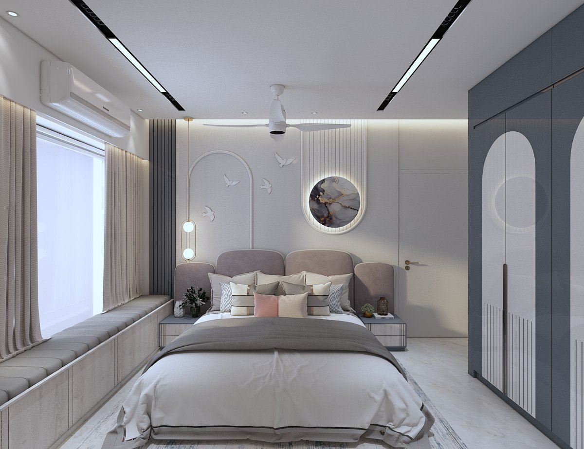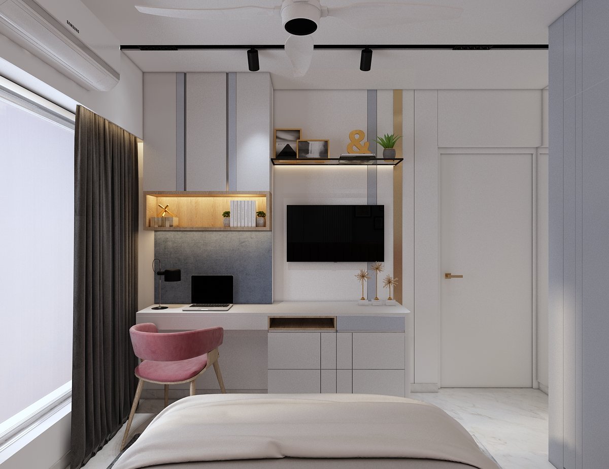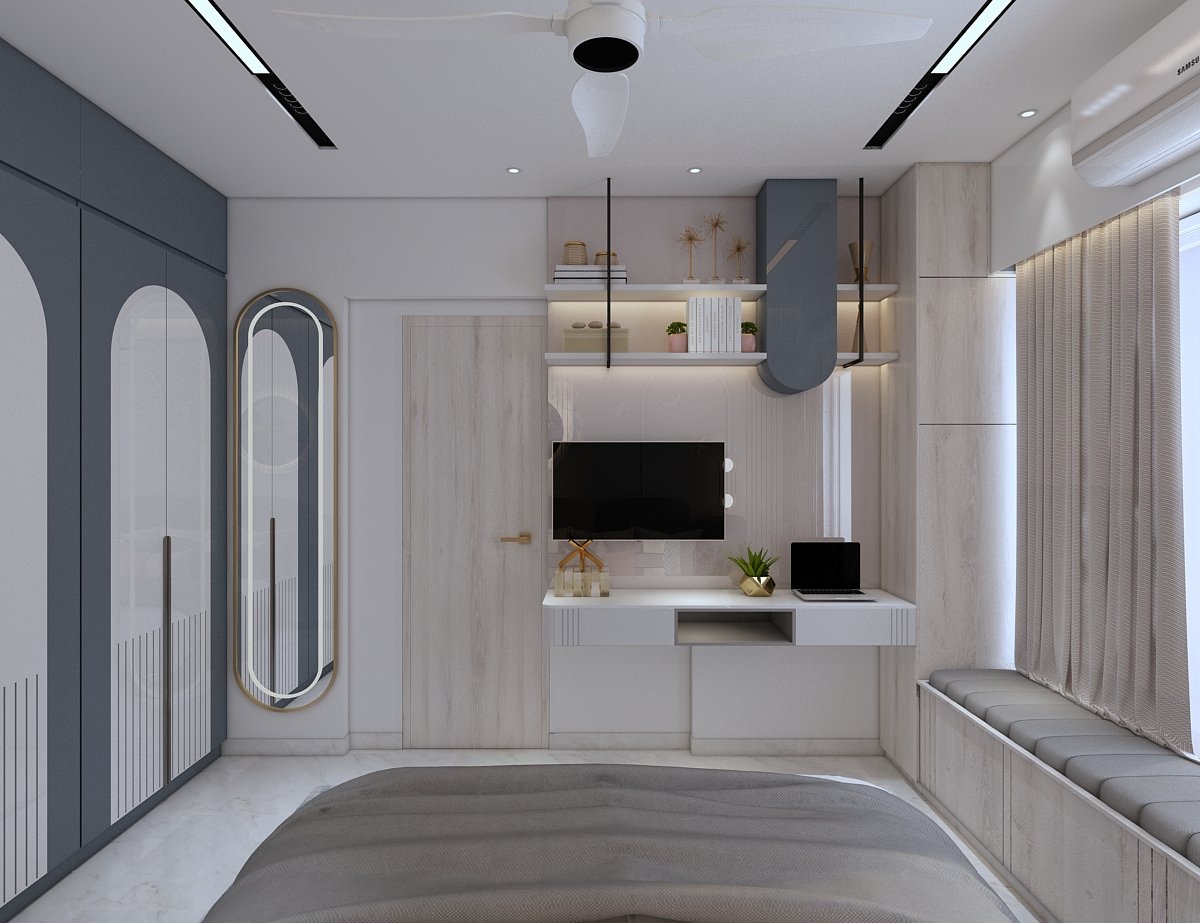 The project is located in Mumbai. The concept & design of this small house have been tack- led with minimal and solid colours with less glamour and more contemporary. This project was mini but minimal we planned this space to give an effective & practical day-to-day use without narrowing our Design aesthetic. In the common bedroom, which is the parent’s room we have given a small space for Mandir, which is seamless yet elegant. Each corner is to be utilized as per requirement, also, keeping in mind don’t want to lose our Design element throughout this project, which makes a home for our client.