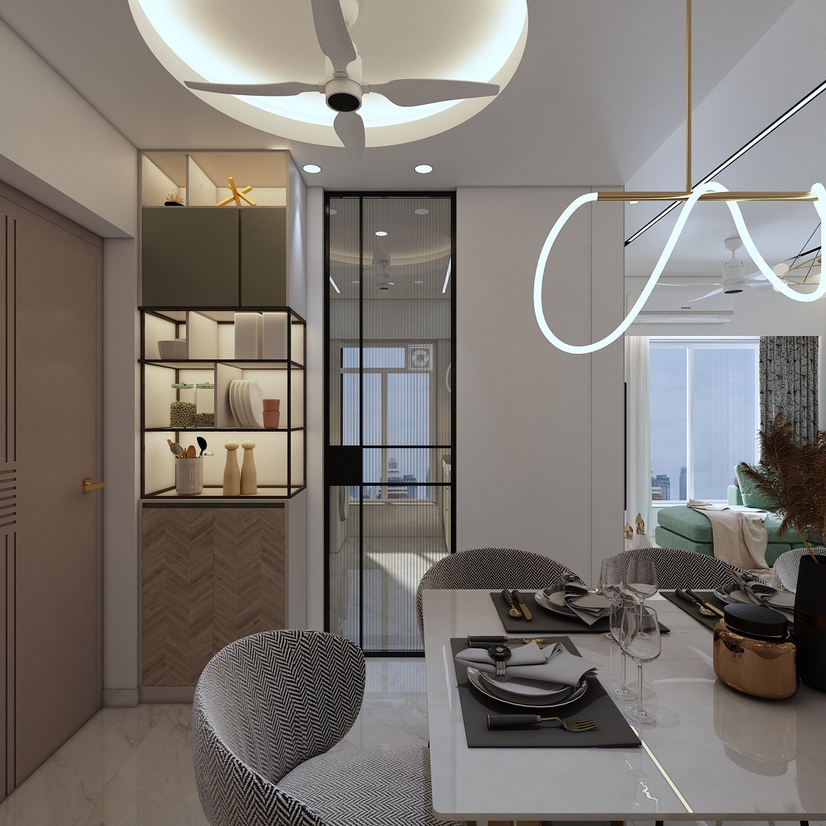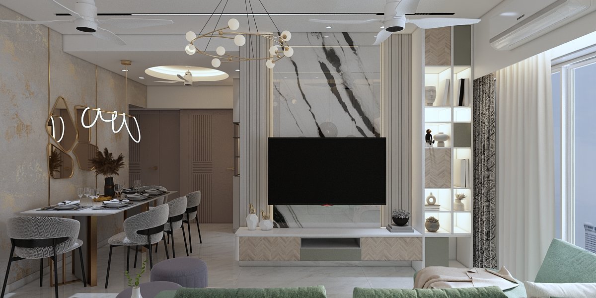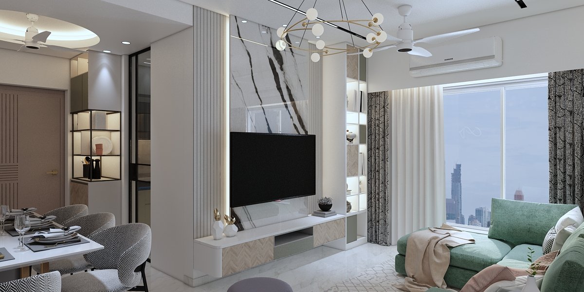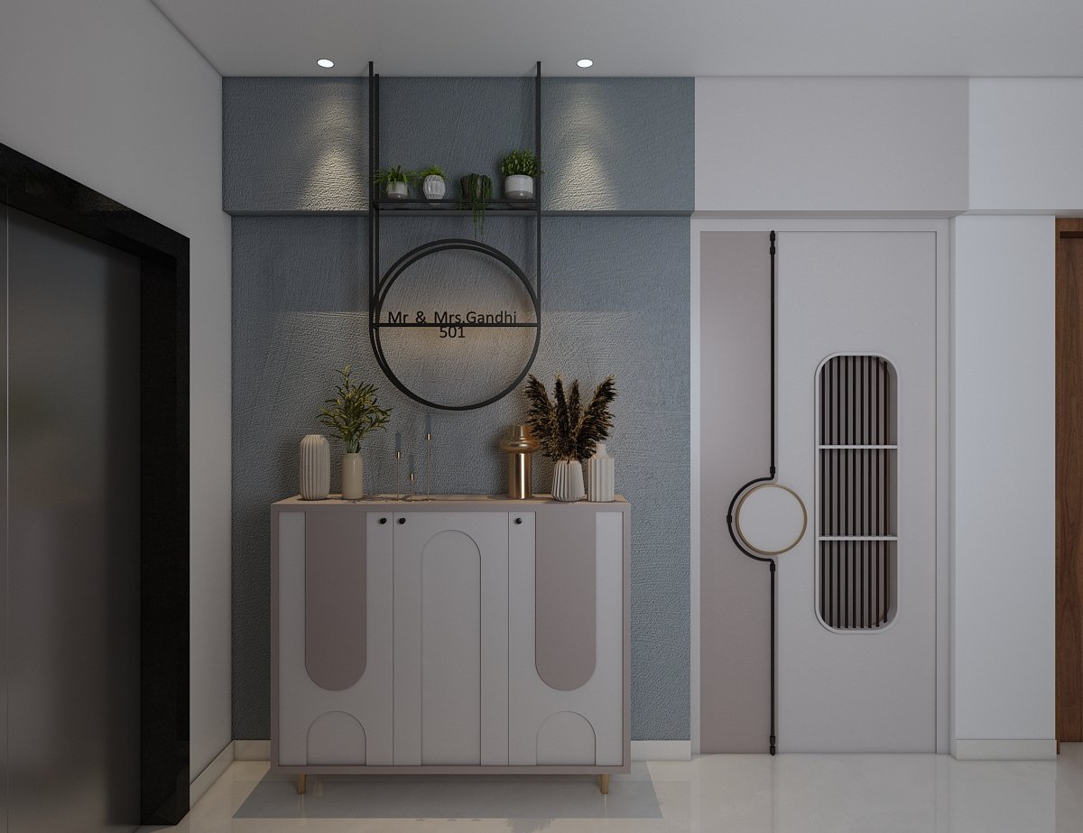 The project is located in Mumbai. The concept & design of this small house have been tack- led with minimal and solid colours with less glamour and more contemporary. This project was mini but minimal we planned this space to give an effective & practical day-to-day use without narrowing our Design aesthetic. In the common bedroom, which is the parent’s room we have given a small space for Mandir, which is seamless yet elegant. Each corner is to be utilized as per requirement, also, keeping in mind don’t want to lose our Design element throughout this project, which makes a home for our client.
