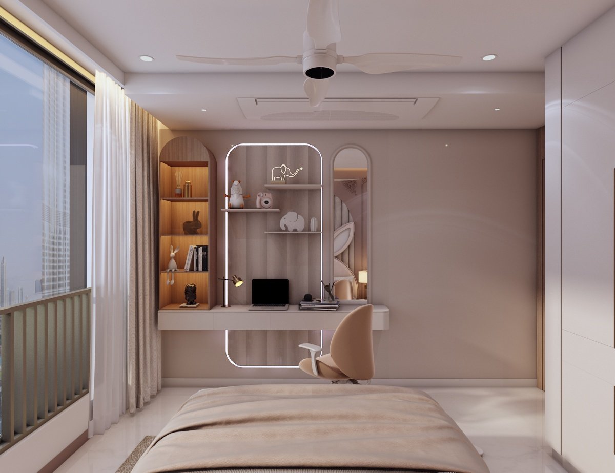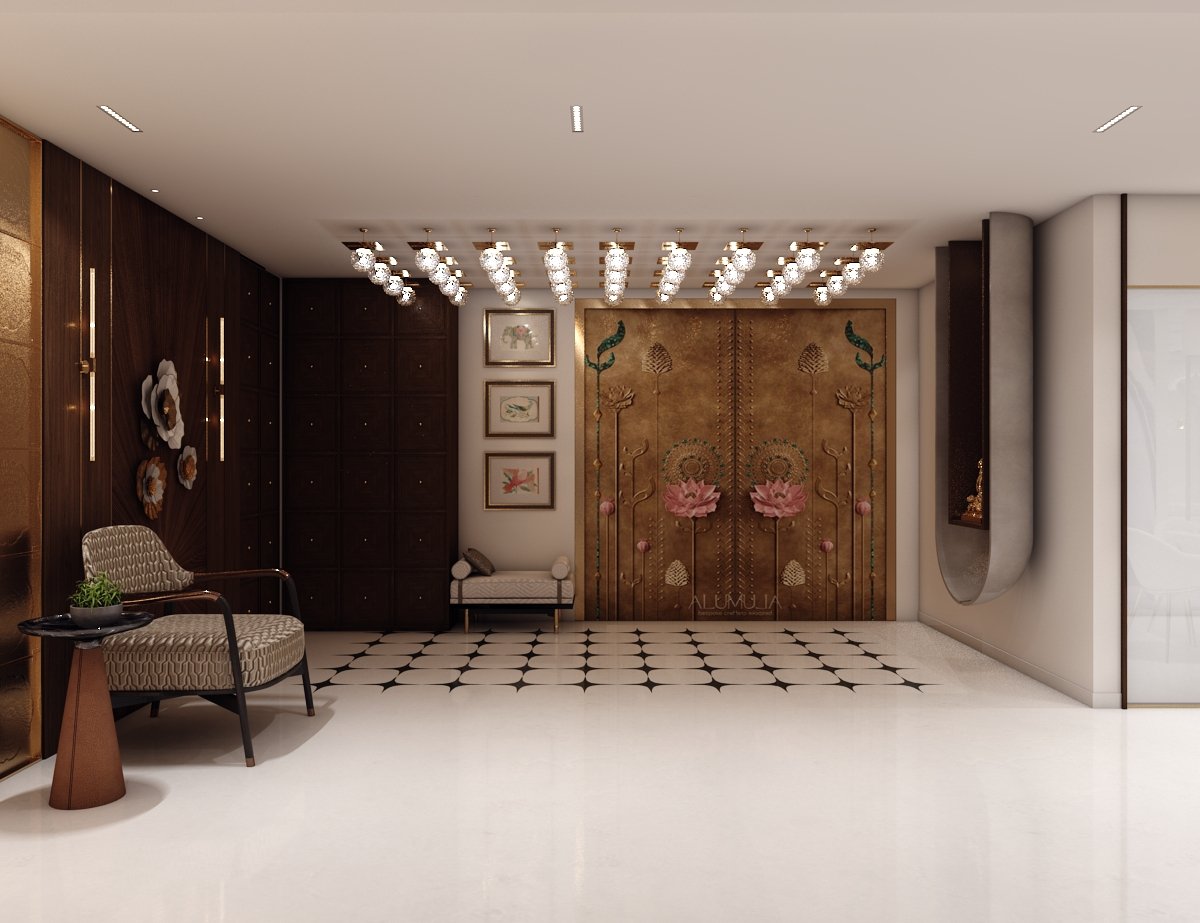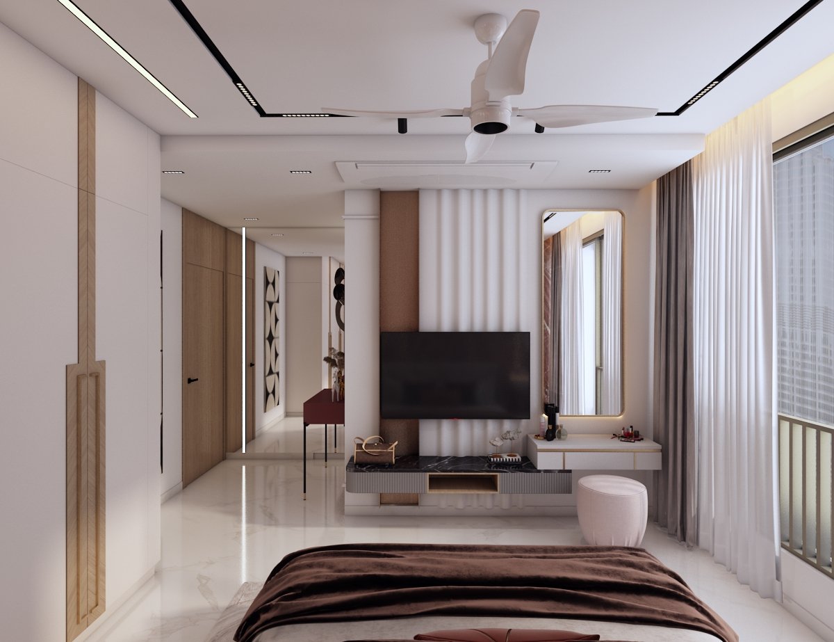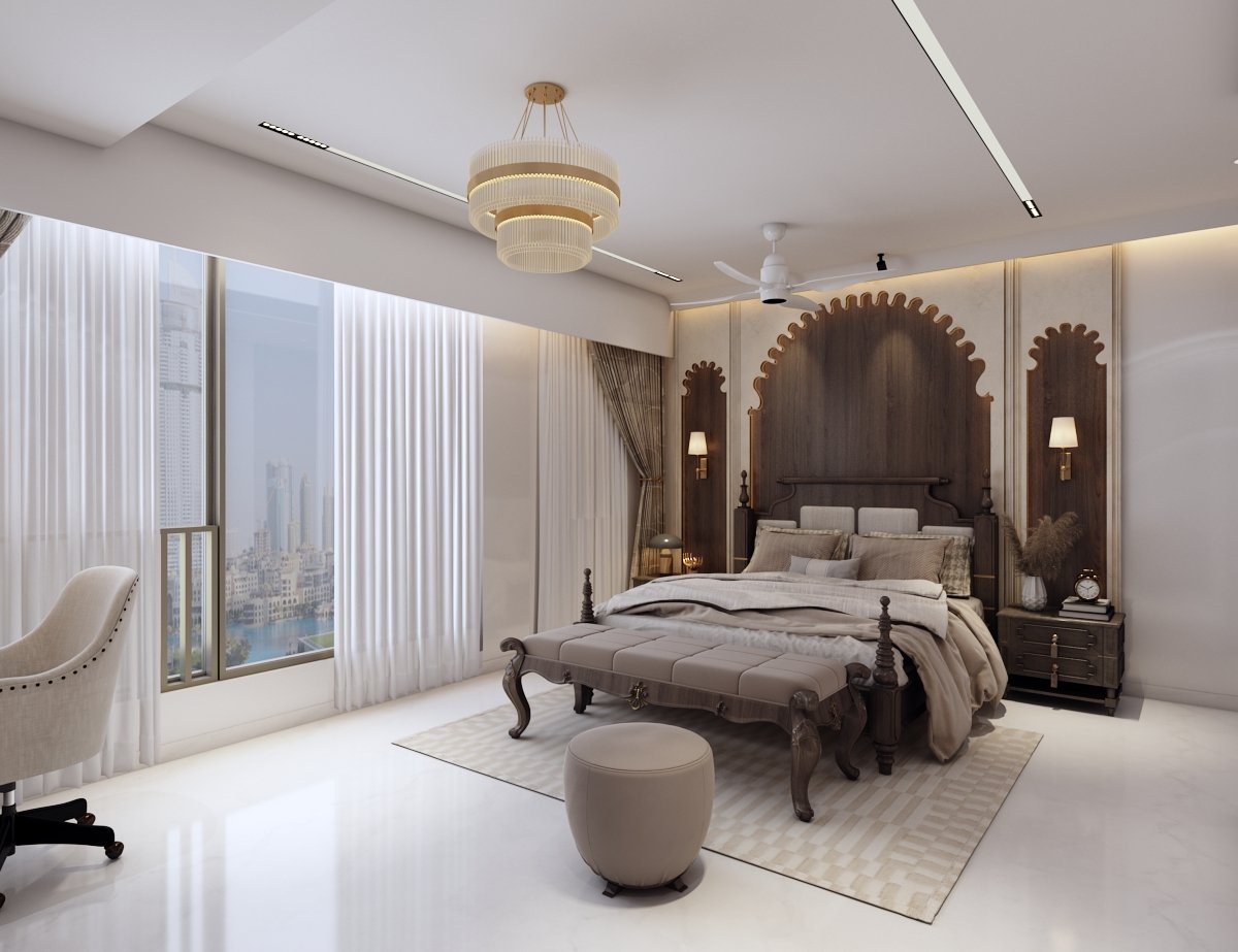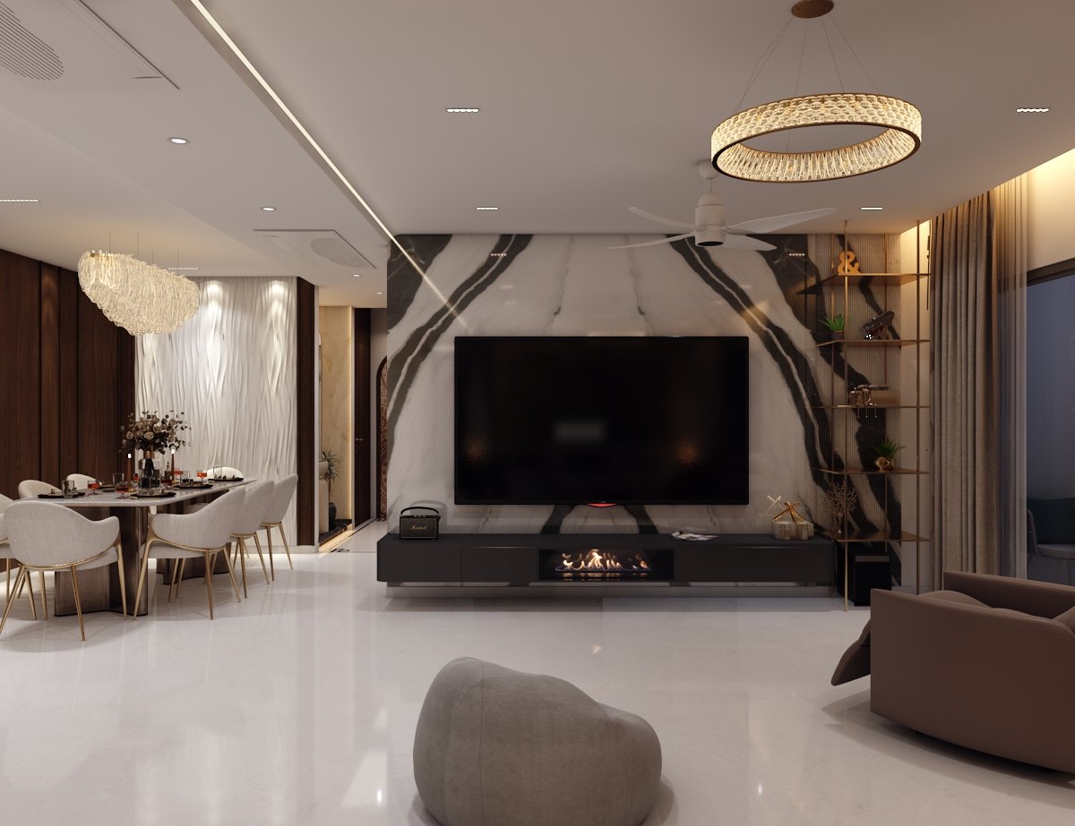 This 6BHK residence blends contemporary elegance with subtle Rajasthani charm. Clean lines, neutral tones, and modern layouts are enriched by traditional elements like carved wooden panels, jharokha-inspired niches, and patterned tiles. Sleek furniture is paired with vibrant textiles, mirror work, and hand- crafted decor accents. Spacious interiors feature open plans and natural light, while select rooms showcase heritage motifs and arches. The design balances modern functionality with the warmth and artistry of Rajasthan’s rich cultural heritage.